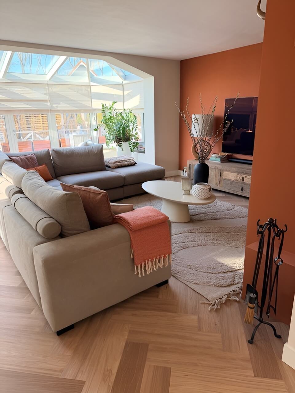Deze woning met ruime woonkamer, serre, eetkamer en keuken is volledig getransformeerd tot een warme en sfeervolle leefomgeving waarin comfort en stijl samenkomen.